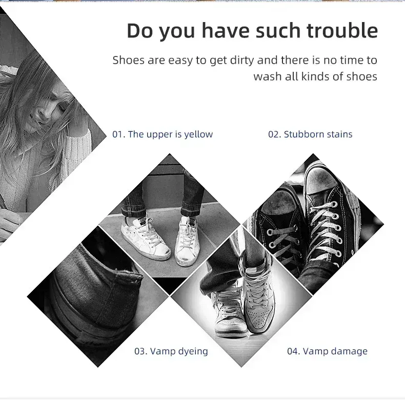 Formulated to be safe, non-acidic and non-alkaline. Will not cause damage to shoes, but also more care for the health of hands: avoid alkaline washing, effectively avoid the textile upper color loss, deformation, aging and other problems.