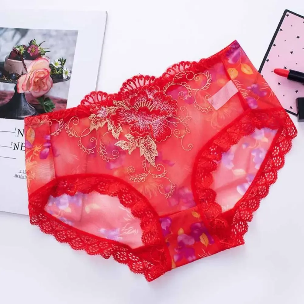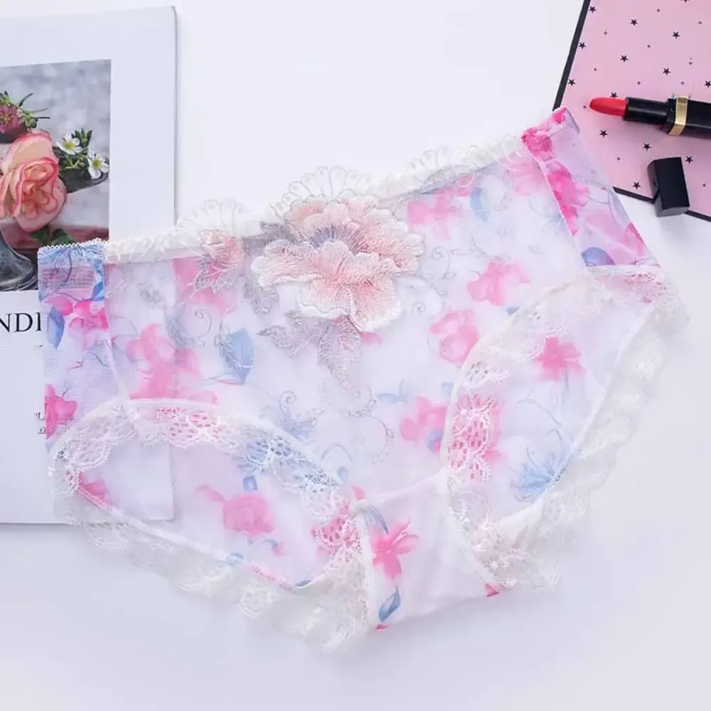 3 pieces of sweet mesh transparent lace flower underwear in plus size