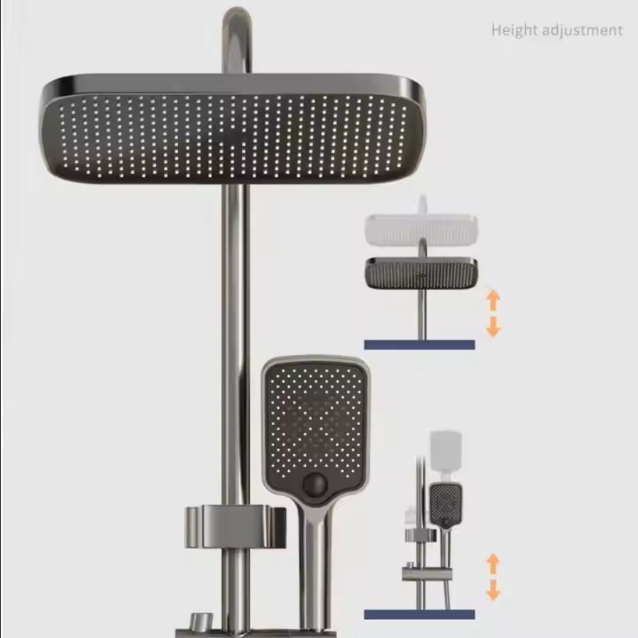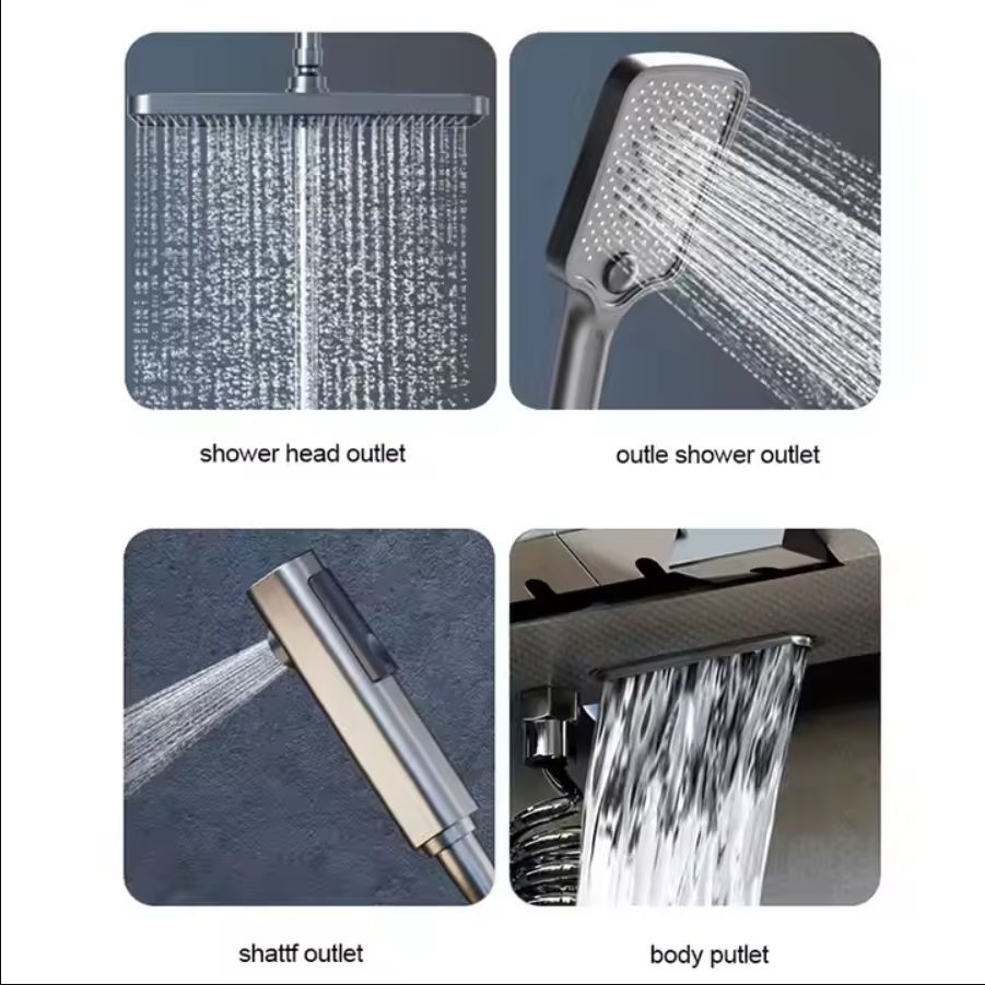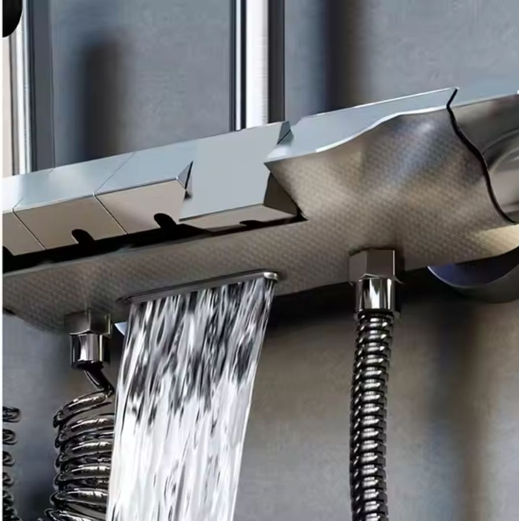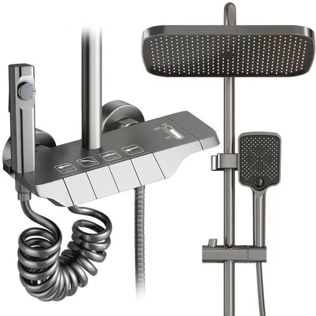 Bathroom Shower Faucet Set 4 Functions Digital Display Shower Thermostat Gray Black High Pressure Discharge Copper Taps