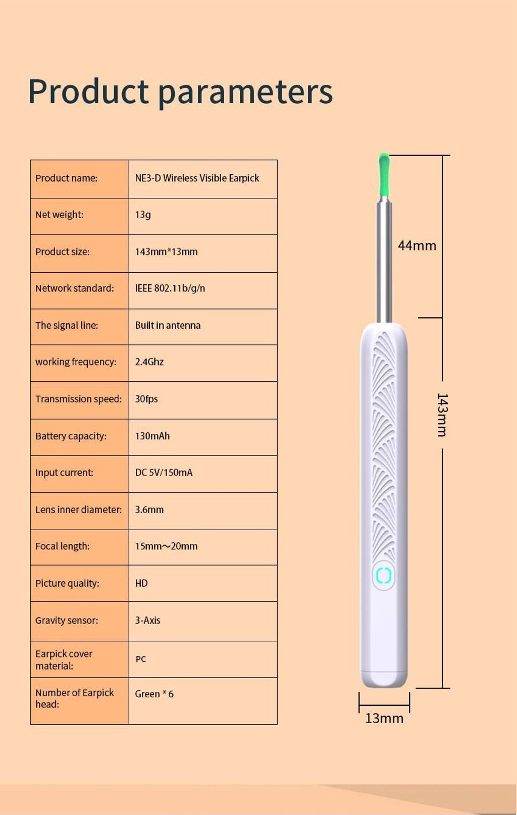 NE3-D Ear Wax Removal Kit Wifi App Support Ear Wax Remover Camera With 8PCS Ear Cleaner Set