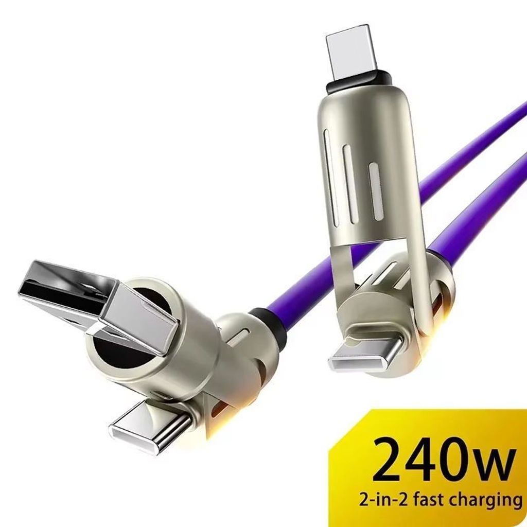 (Buy one get one free)New 240W four-in-one lamp post, colorful indicator light, 1.5m mobile phone charging cable, two-to-two fast charging data cable