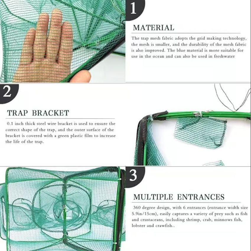 - Very suitable for fishing smelt, eel, crab, lobster, fish, shrimp and crayfish. A great tool for fishing enthusiasts.