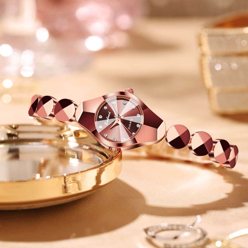 Womens Waterproof Versatile Quartz Watch with Elegant Bracelet Design, Chic Ins Style High-End Lightweight Ice Out Watch
